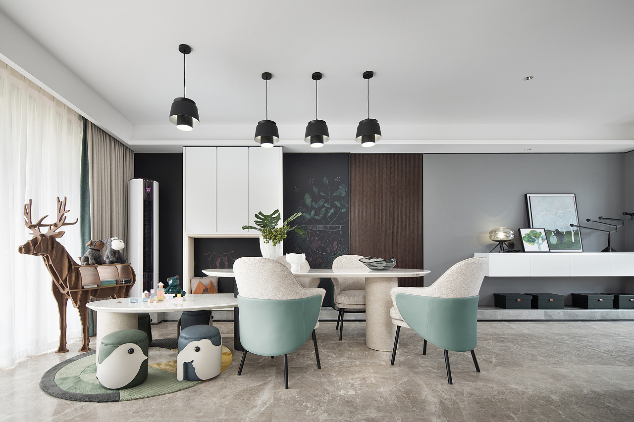 主题简约明亮:简约风格的特点是简约明亮。它主要是用简单的方式来获取人们对简单空间的需求,尤其是对于人们生活节奏的加快和精神空间的强烈压迫。现代简约最适合
