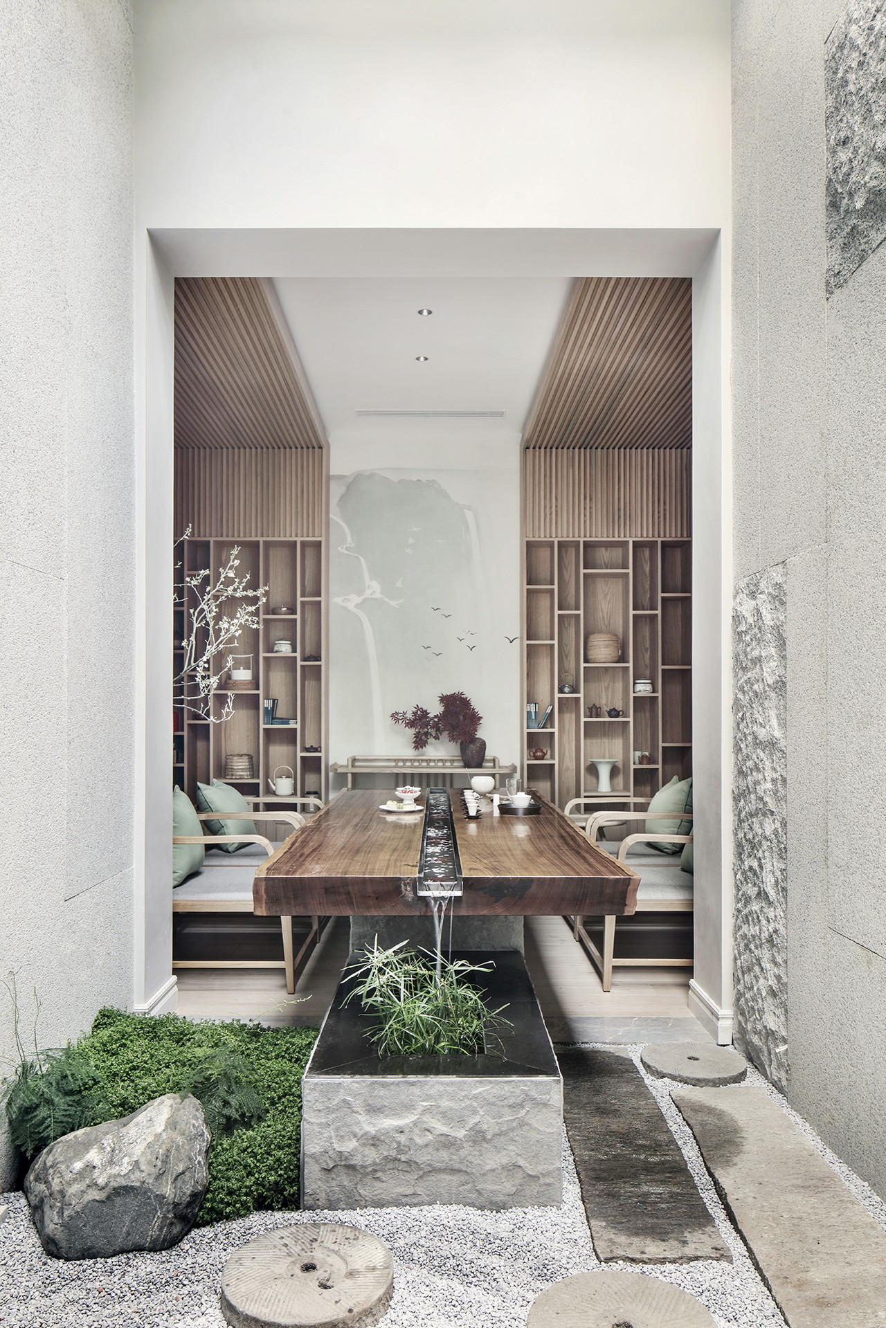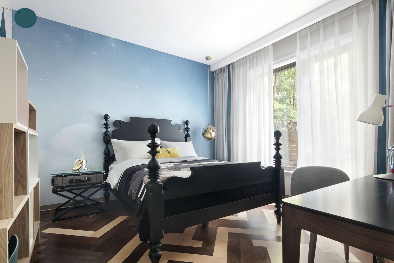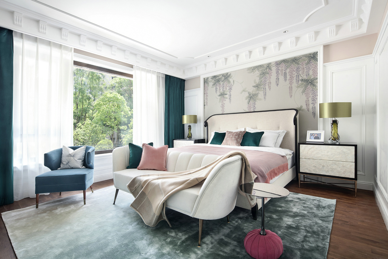 甫进玄关,对称设计的稳重感与仪式感便扑面而来,生机盎然的花束,清芬盈室,仿佛是在欢迎来访之人。 门厅、玄关与正餐厅在层层递进中,一一跃入眼帘,像一首节奏感极强的音乐,律动错落,疏密有致。客餐厅与西厨的打通,增强了家庭成员彼此间的互动性,让家中充满了爱、温暖与明朗的氛围。