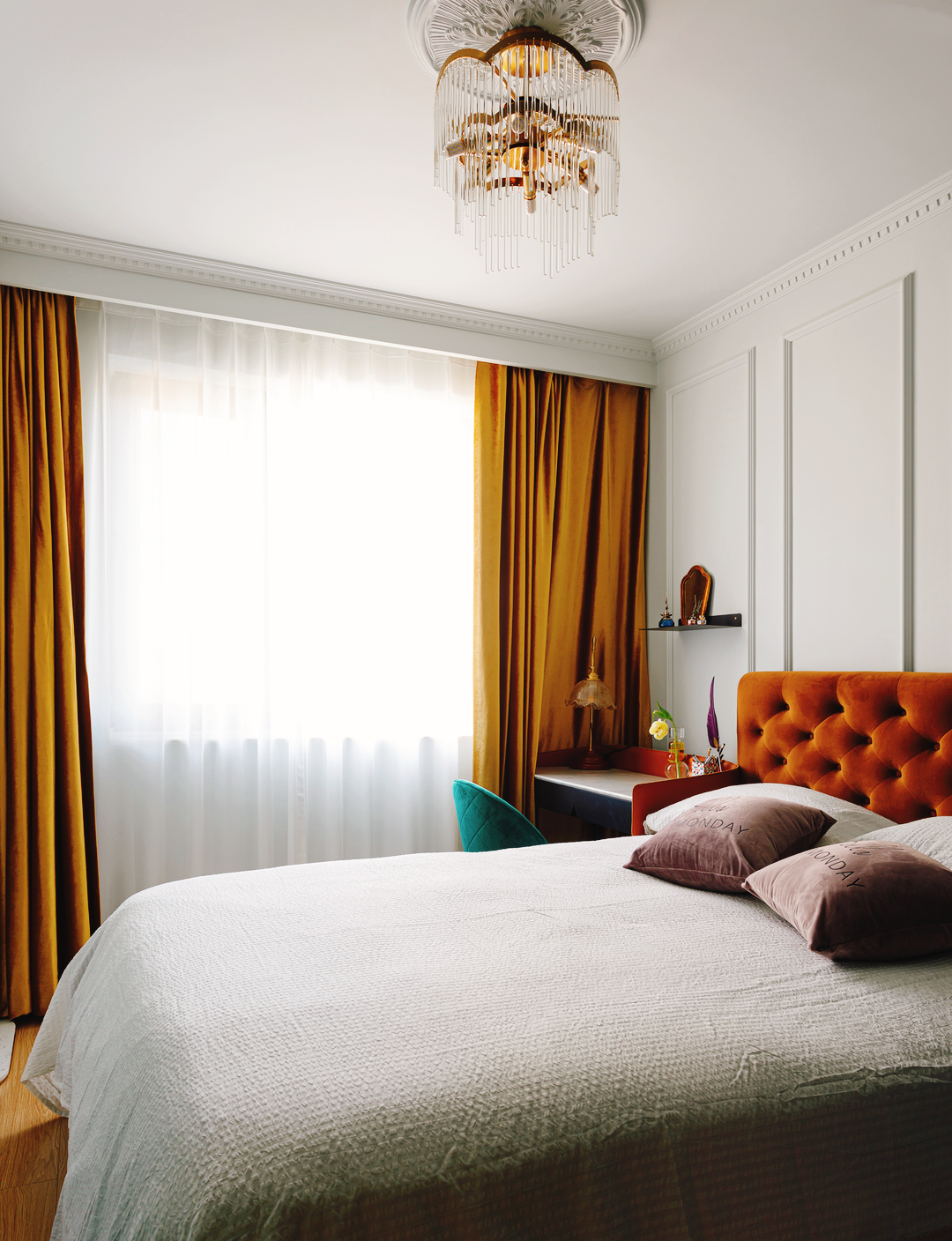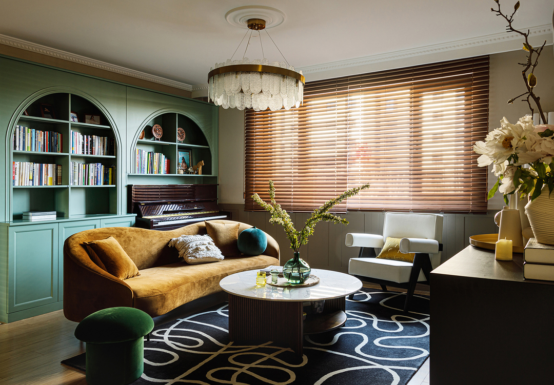 姜黄、冰绿色、深浅咖色,搭配出88㎡精致复古两居