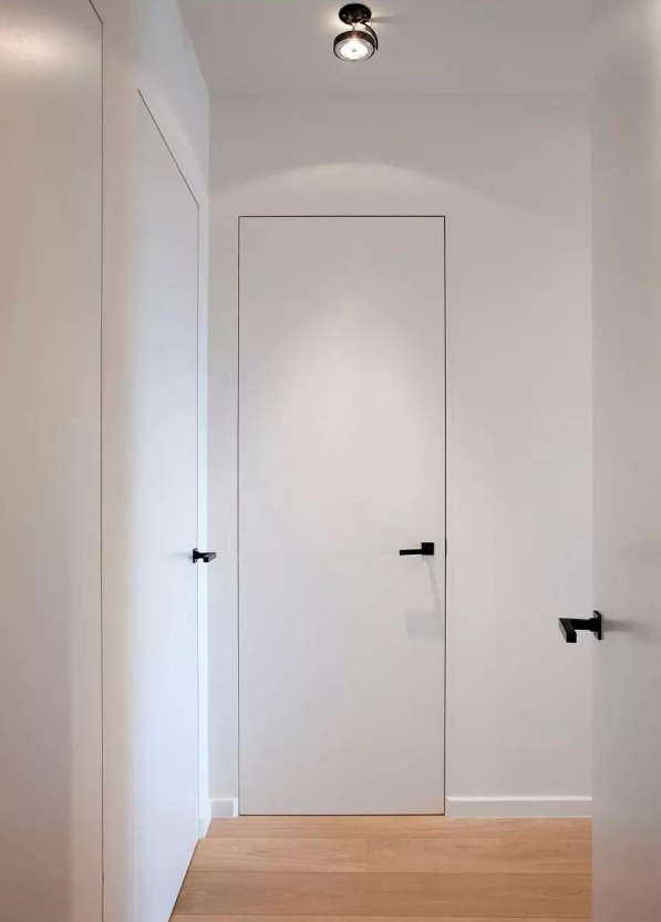 其次如更想达到以假乱真的效果,门上的踢脚线位置也要设计进去,如表面墙漆、墙布饰面的隐形门通常都会另做踢脚线,木饰面的除外。