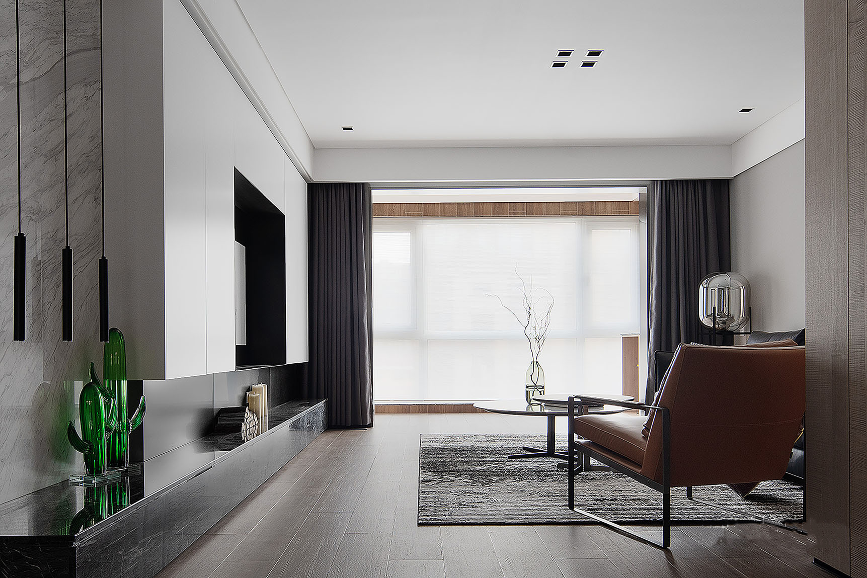 设计着重于思考人们生活与环境的多层级关系,借鉴黑白影像的哲学,剥去热带缤纷旖旎的色彩,褪去环境喧嚣的表象,发掘居住者最真实的诉求,多层次展现生活的真实轮廓,以及空间自身蕴含的能量与内力。