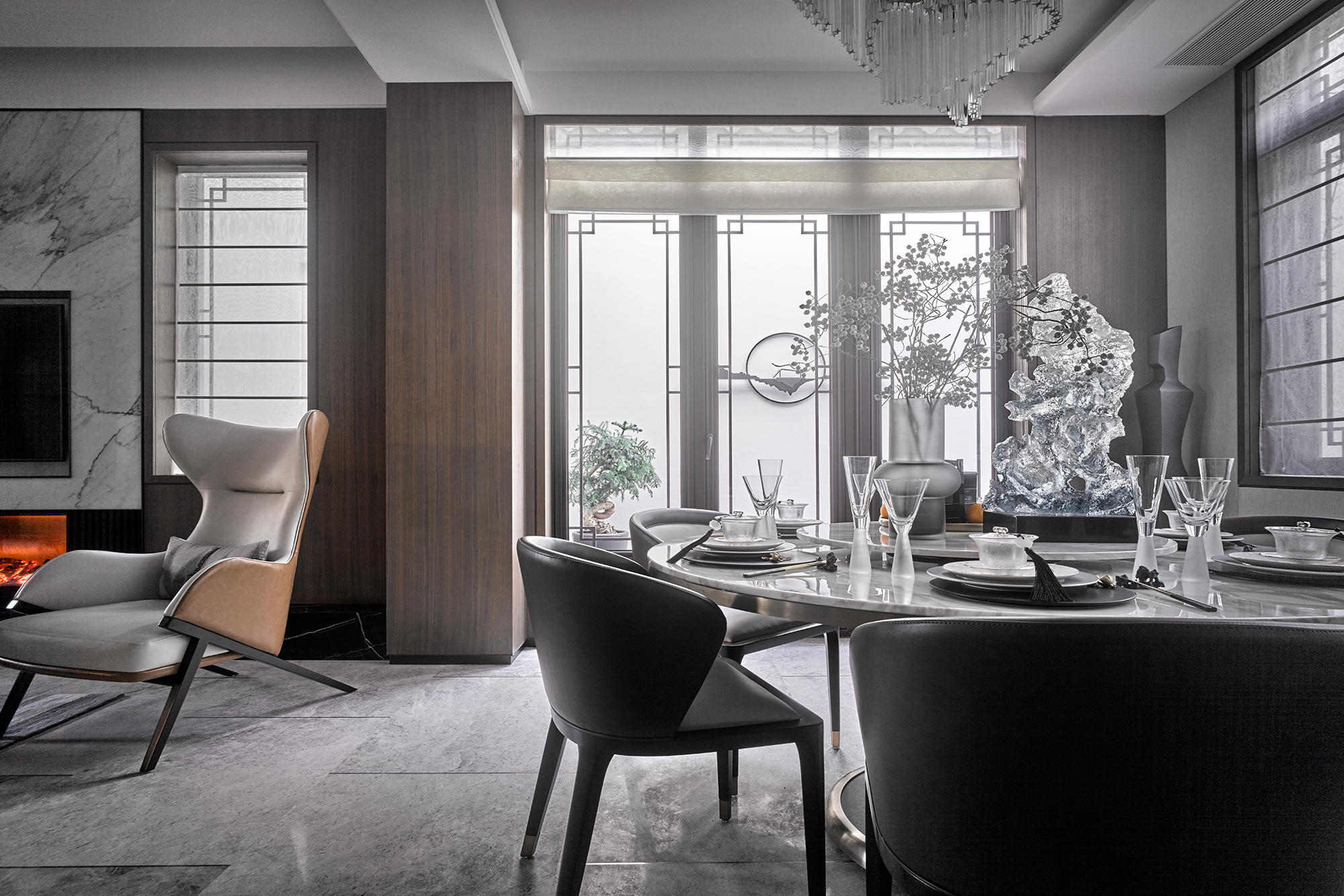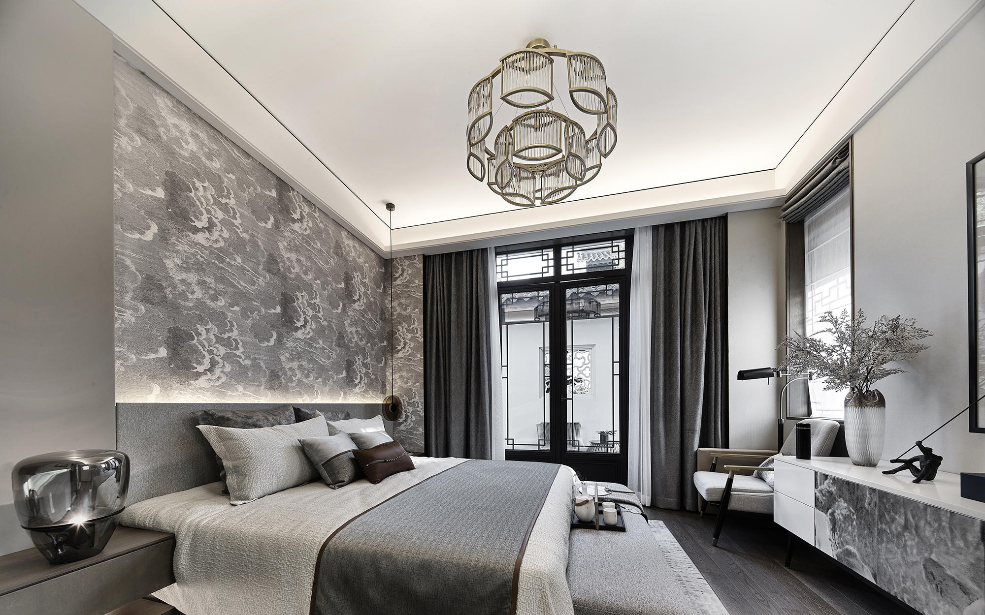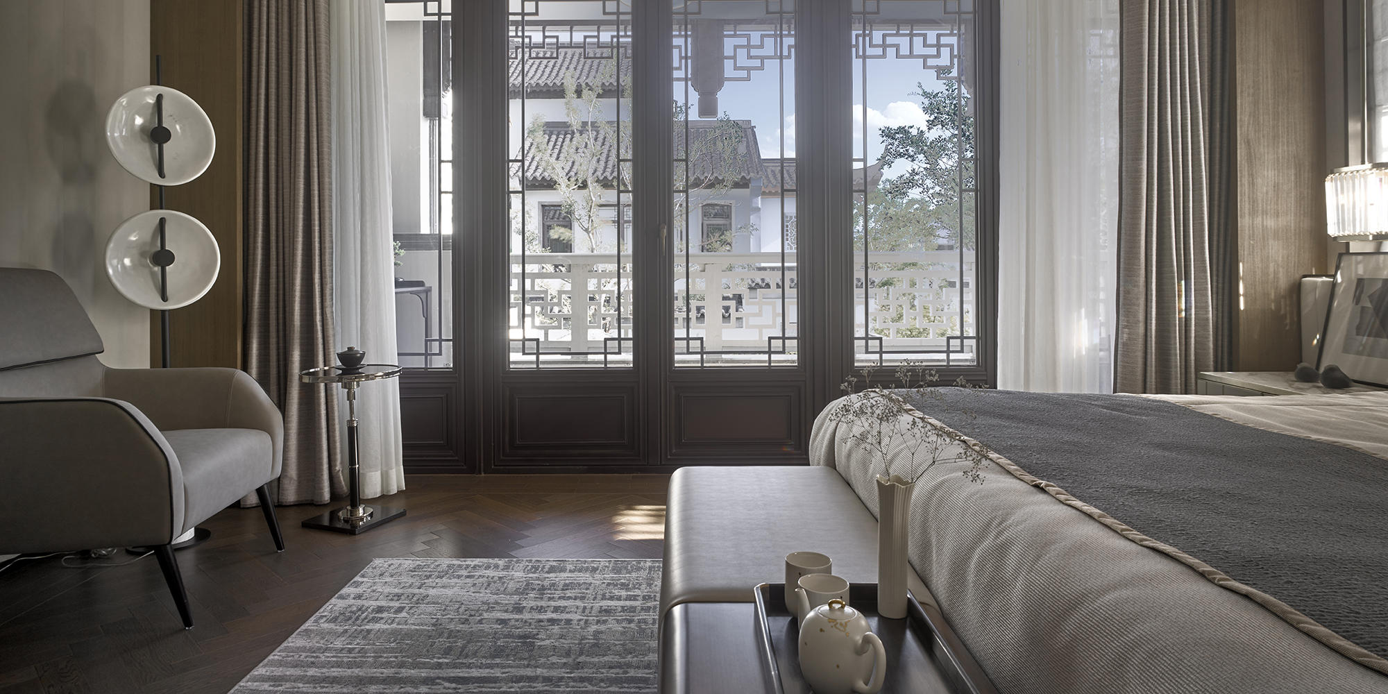 眺望富春江,背倚黄公望国家森林公园,绿城·富春玫瑰园以赋予有无相生、道法自然的东方哲思,匠心创作出遵循中式美学内涵的庭院居所,隐逸生活映现于世。