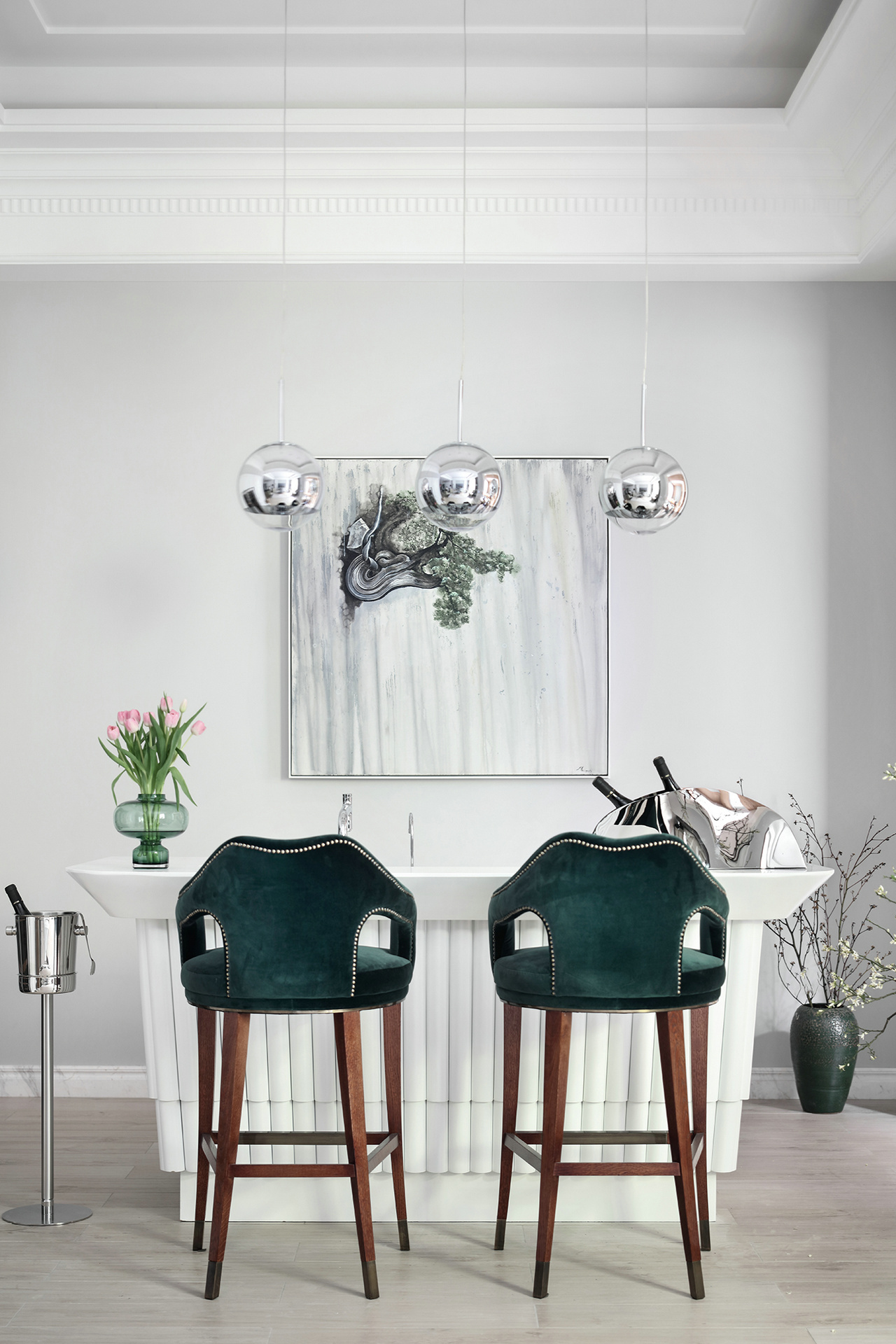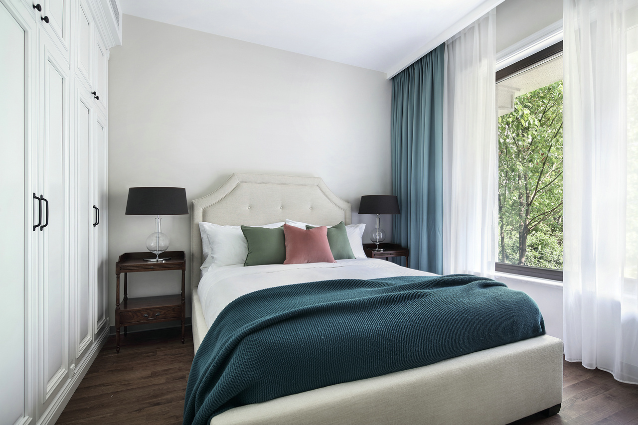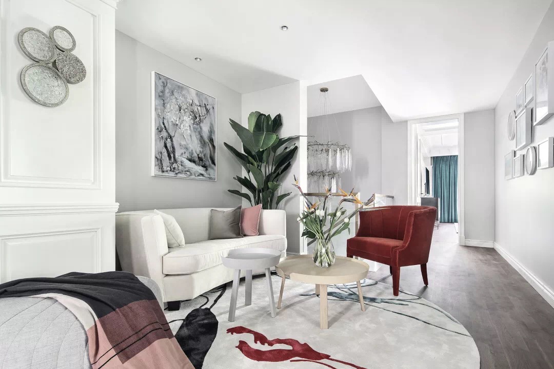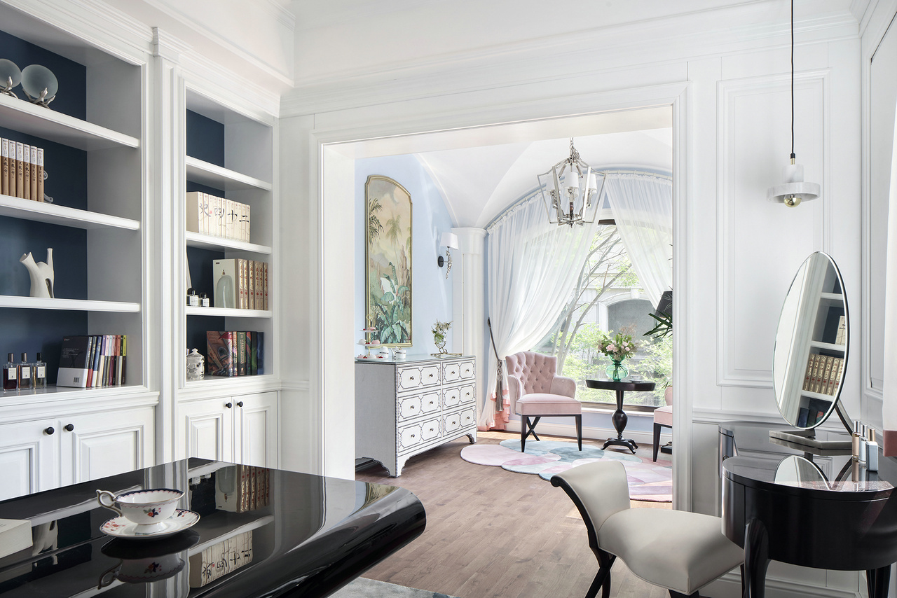 甫进玄关,对称设计的稳重感与仪式感便扑面而来,生机盎然的花束,清芬盈室,仿佛是在欢迎来访之人。 门厅、玄关与正餐厅在层层递进中,一一跃入眼帘,像一首节奏感极强的音乐,律动错落,疏密有致。客餐厅与西厨的打通,增强了家庭成员彼此间的互动性,让家中充满了爱、温暖与明朗的氛围。