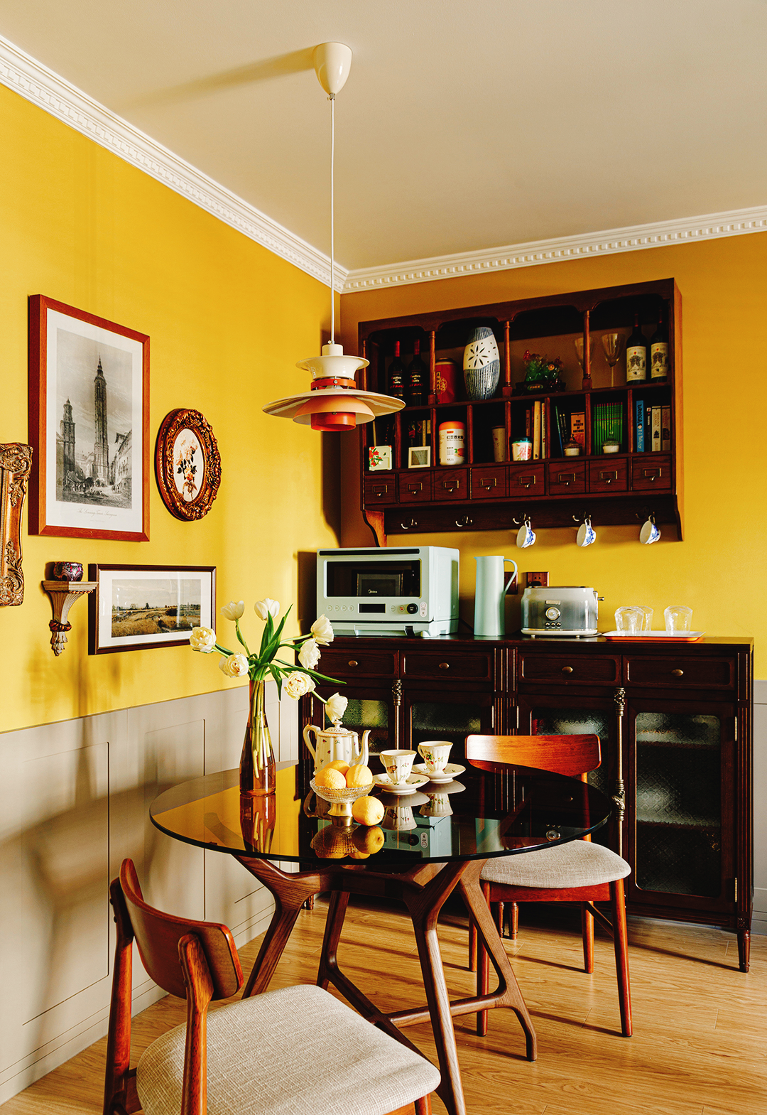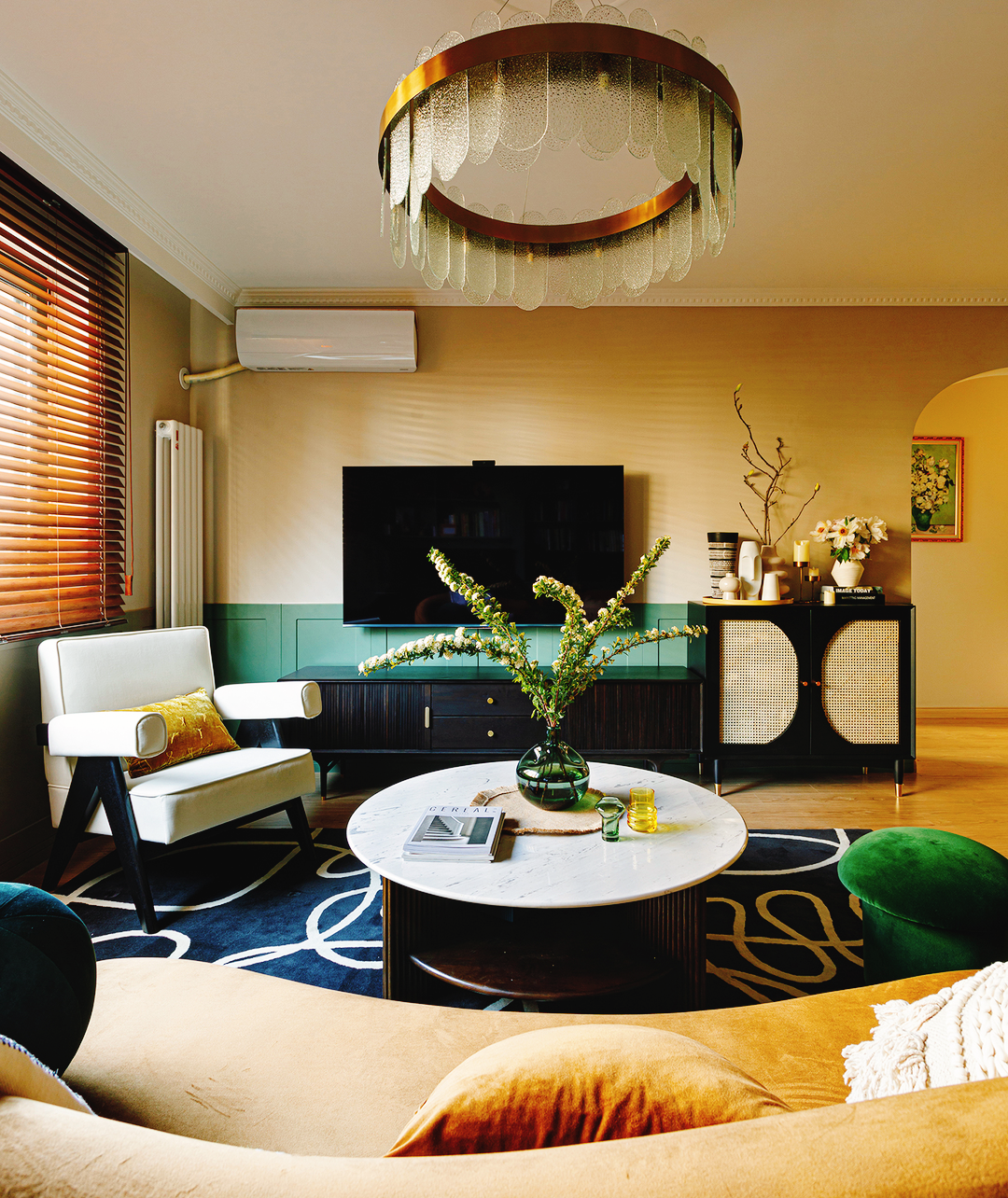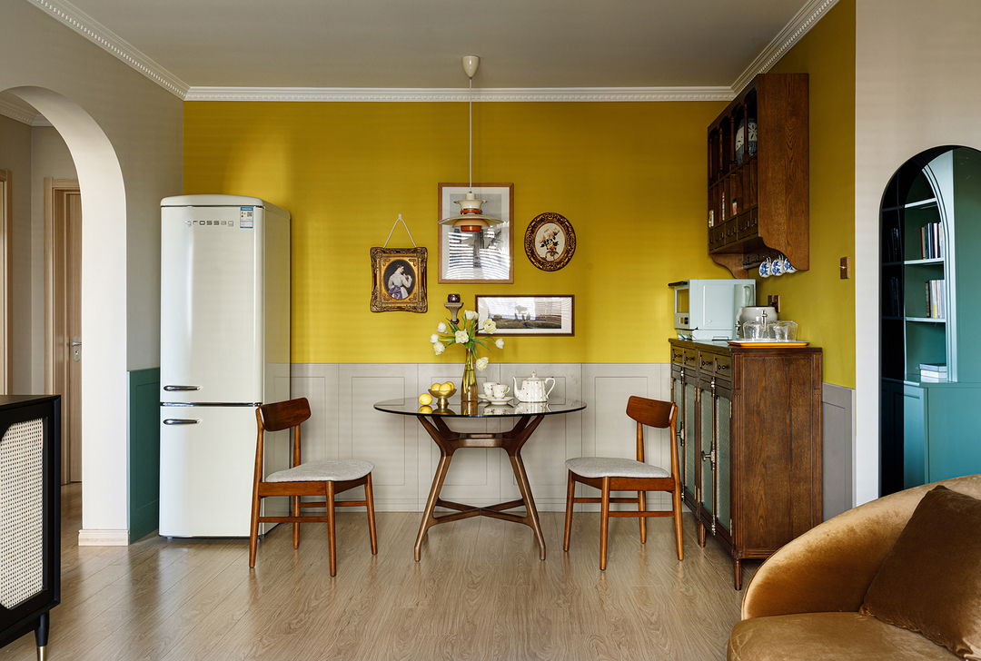 姜黄、冰绿色、深浅咖色,搭配出88㎡精致复古两居